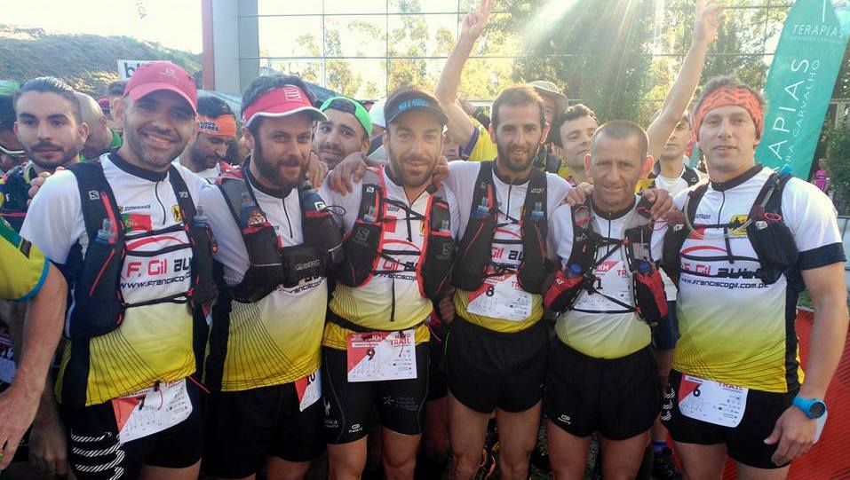 Campeonato Nacional de Trail Ultra ao rubro no Hard Trail do Monte da Padela. Disputa coletiva lugar a lugar – 10 pontos separaram as 4 primeiras equipas – com os nossos bravos a conseguirem de novo lugar no pódio, no 3.º posto. Individualmente estivemos também muito bem com 4 atletas nos 20 primeiros: Vítor Cordeiro, menos de 24 h após ter corrido a Meia Maratona Brisas do Atlântico, começou com prudência e isso levou-o ao 6.º lugar com 4 h 08 m 38 s nos 45 Km. Os Kms finais foram corridos na companhia de Luís Semedo que embora tenha arriscado um pouco mais de início acabou por não quebrar muito e assim somar mais uma excelente prestação (7.º com 4 h 08 m 39 s) e o pormenor de ter sido o mais rápido concorrente na mais dura das 3 duríssimas subidas do percurso. Ente a elite estiveram de novo Luís Malheiro (14.º com 4 h 27 m 45 s) e Marco Nabais (18.º com 4 h 37 m). O “quinteto portalegrense” fechou com o arronchense José Reis, que substituiu Dino Mafra à última hora, 54.ºcom 5 h 14 m 36 s. Dificuldades apenas para Nelson Caldeira que, vítima de indisposição, optou por abandonar ainda na fase inicial da prova que foi ganha por André Rodrigues (Nutrifit) em 3 h 53 m 30 s, uma larga vantagem de 8 m 25 s para o 2.º classificado.