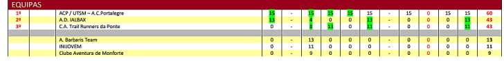 Começámos pela versão Longa do Circuito AADP de Trail. Nove equipas conseguiram classificar-se em pelo menos uma das 9 provas do Circuito. O ACP participou em todas e em todas conseguiu vencer colectivamente pelo que na Gala será chamado para receber o troféu de equipa campeã com a pontuação máxima.
