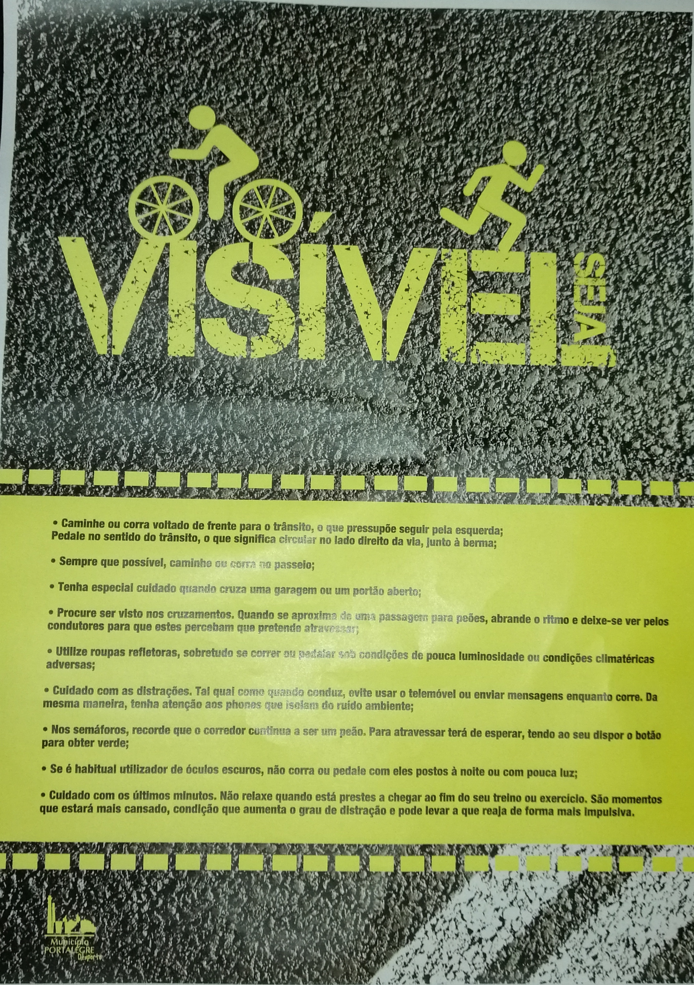 O município de Portalegre lançou, esta segunda feira, a campanha “Seja Visível”, com chamadas de atenção sobre os comportamentos a adotar na utilização do espaço público, sobretudo durante a prática de atividades desportivas à noite. A primeira ação de sensibilização desta campanha decorreu junto ao Estádio Eduardo Sousa Lima, no bairro dos Assentos, onde foram distribuídos folhetos informativos e coletes refletores. Em declarações à Rádio Portalegre, Nuno Lacão, vereador com o pelouro do desporto, alertou para os perigos da prática de exercício, na via pública, sem os cuidados necessários, lembrando que, recentemente um ciclista foi mortalmente abalroado por uma viatura.Nuno Lacão diz que a campanha pretende sensibilizar todos para um comportamento adequado de forma a evitar acidentes. Caminhar ou correr de frente para o trânsito, utilizar roupas refletoras e evitar usar o telemóvel são algumas das chamadas de atenção da campanha “Seja Visível”. Carla Aguiã – Rádio Portalegre
