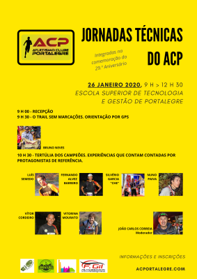 O ACP – Atletismo Clube de Portalegre vai organizar a 1ª edição das suas Jornadas Técnicas no dia 26 de janeiro de 2020, por ocasião do 29.º Aniversário do clube. Tendo como tema central a corrida de longa duração e o trail running decorrerão entre as 9 h e as 12 h 30 m na Escola Superior de Tecnologia e Gestão e são abertas à população que deverá inscrever-se na página do evento no botão Reservar um lugar. Do Programa faz parte a Tertúlia dos Campeões, que se prevê bastante animada face à qualidade, experiência e personalidade dos participantes, todos com o ACP no ADN. Luís Semedo, líder do ranking nacional de distâncias até 42 Km e presença no Campeonato do Mundo de 2019; Vítor Cordeiro, um dos atletas de alto nível com maior longevidade do Atletismo português e vencedor do UTSM 2019; Fernando Alvez Barrero, finalista do UTMB 2019; Sívério Garcia “Che”, vencedor do UTSM 2018; Nuno Paiva, 2º no UTSM 2018; e Vitorina Mourato, a referência do desporto feminino no Alentejo já com 4 décadas de prática federada ininterrupa. A tertúlia será moderada por João Carlos Correia. No outro tema do Programa apontamos ao futuro que, novamente pela inciativa do ACP, se tornará presente na região já em 2020: a corrida em plena natureza orientada por GPS. Inscreva-se, leve consigo o seu smartphone ou aparelho dedicado e Bruno Neves ensiná-lo-á a seguir qualquer trilho sem necessidade de marcações. Ficará também a conhecer, em primeira mão, a novidade de 2020, o São Mamede Adventure Trail – 4 estações. Jornadas Técnicas e SMAT: Mais dois eventos com a marca ACP que pretendemos se tornem referências na formação desportiva na nossa região.