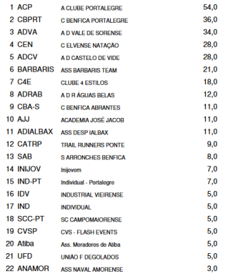 | GONÇALO MATOS | M19 | 1 | 6 | 22:50 |
