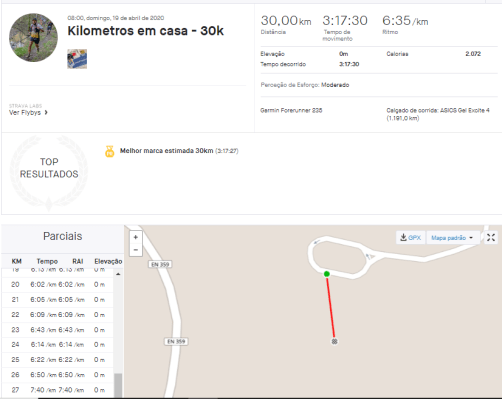 Continuamos a divulgar a forma como, com criatividade, muito empenho e respeitando as diretivas ou o espírito da legislação restritiva de saídas para o exterior em tempos de pandemia, os lobos do ACP têm mantido a prática da atividade física. Hoje regressamos à meritória iniciativa quilómetros em casa e damos a conhecer o desempenho de André Tavares no dia 19 de abril. Foram 30 Km de corrida na garagem, qualquer coisa como 3 h 17 m a tentar não inspirar “monóxido de carbono”. 😉 Mais um grande feito, a correr, sozinho em casa. Regressaremos … para inspirar!