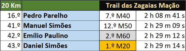 Um quarteto representou o ACP no 8.º Trail das Zagaias disputado ontem sob grande canícula no concelho de Mação. Os 4 lobos ficaram na primeira metade dos 92 participantes com Pedro Parelho a ser o mais rápido e Daniel Simões e Emílio Paulino a conseguirem subir ao pódio. Muitos parabéns aos 4