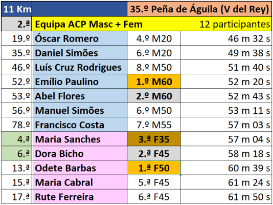 Os lobos não temeram a águia nem o calor ontem de manhã e participaram com numerosa alcateia (12 atletas) na 35.ª edição do Cross Peña del Águila que tradicionalmente se realiza em Vilar del Rey no mês de agosto. Fomos a 2.ª equipa em número de classificados e os nossos masters topo de gama conseguiram 5 pódios e 2 vitórias (Emílio Paulino em M60 e Odete Barbas em F50). Todos os resultados devidamente destacados na tabela abaixo. Aos 12 magníficos que madrugaram cedo e enfrentaram a árida campina extremeña os nossos parabéns e o nosso obrigado.