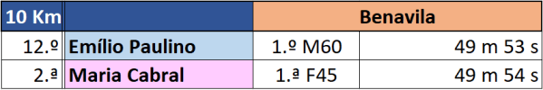 Maria Cabral (ACP) classificou-se em 2.ª da Geral feminina no evento 10 Km by Night disputado ontem em Benavila. Venceu a sua categoria etária (F45) tal como o outro representante da alcateia, Emílio Paulino, nos M60. A ambos os nossos parabéns.