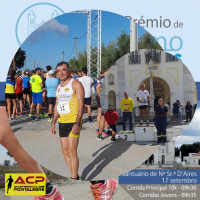 Emílio Paulino (ACP) classificou-se em 30.º e 2.º na categoria etária M60 no Grande Prémio Senhora D’Aires, disputado no domingo em Viana do Alentejo na distância de 10 Km que completou em 48 m 44 s. Muitos parabéns!
