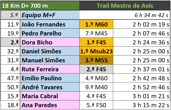 Da participação do ACP no Trail Mestre de Avis, edição 2023, disputada ontem sob muito calor, avultam as 2.ª e 4.ª posições na Geral Feminina de Dora Bicho (ACP) e Rute Ferreira (ACP), bem como as vitórias por categoria etária de Dora em F45, João Fernandes (ACP) em M60, Daniel Simões (ACP) em Msub23 e dos pódios de Rute, 2.º nas F45, e Manuel Simões (ACP), 3.º M55. Por equipas o ACP foi a que apresentou mais participantes tendo conseguido a 5.ª posição coletiva. Mais 180 Km que os lobos percorreram em torno de Figueira e Barros. Parabéns a todos!