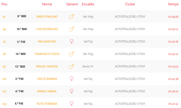 Odete Barbas (ACP) e Mia Sanches (ACP) estiveram em destaque ontem na Sertã pois conseguiram subir ao pódio nas suas categorias etárias na Mini Maratona do Maranho, uma corrida de 9, 7 Km entre Cernache do Bonjardim e Sertã. O evento classificou 301 concorrentes tendo o ACP participado com 8 atletas. Publicamos uma lista com as classificações e os resultados de todos, endereçando-lhes os parabéns por mais uma excelente participação