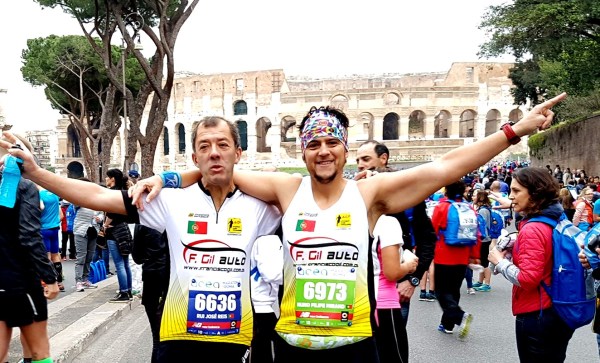 ACP, Clube de Maratonistas, juntou ontem mais uma capital europeia ao espólio das fantásticas corridas de 42195 m que já tiveram lobos na Partida e na Meta. Roma foi a maratona escolhida pela dupla Rui Monteiro – Nuno Rodrigues para se desafiarem no dia 2 de Abril de 2017. Chegaram os 2 à Meta e o Nuno com RP. Rui Monteiro ressentiu-se de lesão ainda não totalmente curada e geriu para terminar na casa das 3 h 27 m e Nuno Rodrigues deu mais uma machadada de 8 minutos no seu melhor registo pessoal e encontra-se praticamente sub 4 h ((4 h 02 m 48 s). A chuva foi o principal obstáculo da prova que segundo o Rui “Roma, linda para passear nada de interessante para correr, excepto passar pelos monumentos EXCELENTES, temos por aí maratonas a bem melhores e mais bem organizadas.“