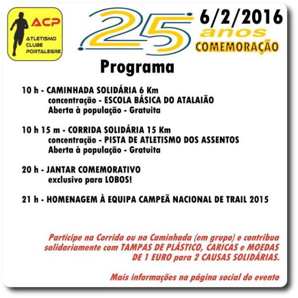No dia 6 de Fevereiro, sábado, o ACP comemora o 25.º aniversário da sua fundação. Vinte e cinco anos de dedicação ao Desporto e à região de Portalegre. O programa comemorativo consta de: