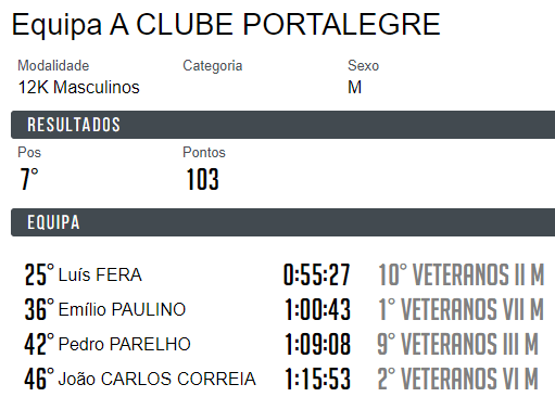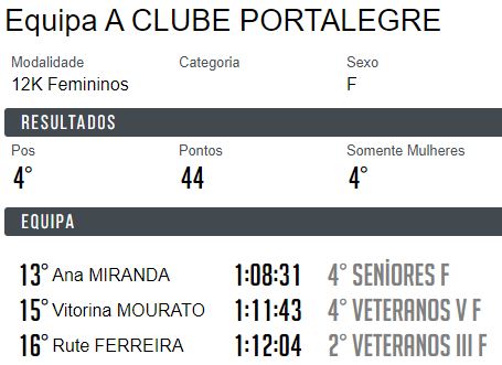 ACP 7.ª equipa masculina e 4.ª feminina (campeã distrital) na 5.ª jornada da Taça de Portugal de Corrida em MontanhaAna Miranda 13.ª Luís Fera 25.º Vitorina Mourato 15.ªEmílio Paulino 36.º e 1.º M65Rute Ferreira 16.ª e 2.ª F45Pedro Parelho 42.ºJoão Carlos Correia 46.º e 2.º M60JC, Fernando Fernandes (Selecionador FPA) e Vitorina Mourato (Campeã nacional em 1998, 1999 e 2000)Resultados completosResultados completos