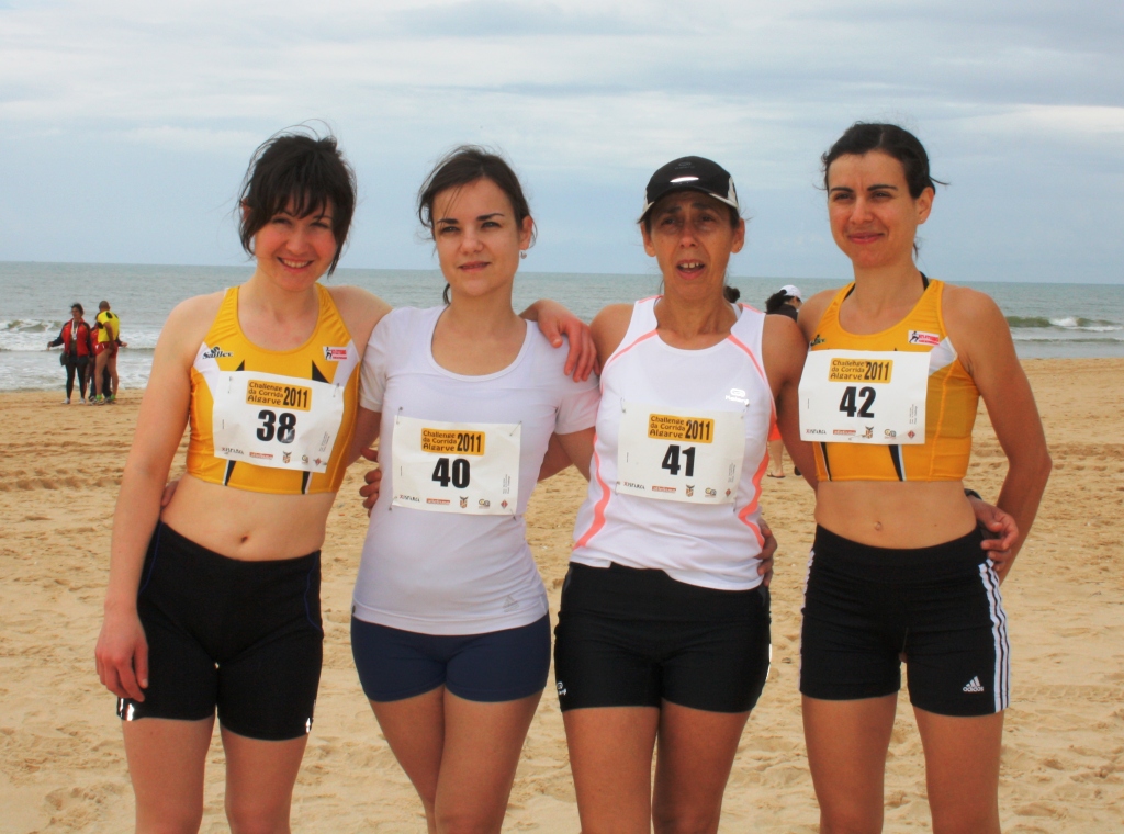 Emílio Paulino (1º M50), Equipa (2ª), Bruno Paixão (3º M20) e Paula Matos (3ª F40) subiram ao pódio no Challenge da Corrida que terminou hoje no Argarve com a realização da Meia-Maratona de Castro Marim. Foi uma grande jornada para as nossas cores já que conseguimos classificar 10 atletas entre os 104 que completaram o desafio. As posições de cada um no Challenge (Geral) foram as seguintes: 3º Bruno Paixão, 24º Emílio Paulino, 31º André Trindade, 45º João Borges, 55º Sérgio Carinhas, 56º João Farinha, 58º Carla Dias (6ª feminina), 93º Paula Matos (16ª feminina), 101º Ana Vieira (17ª feminina) e 103ª Natália Andrade (18ª feminina). Na meia-maratona final os nossos atletas conseguiram os seguintes tempos: Bruno Paixão 1:09:24, Emilio Paulino 1:21:26, André Trindade 1:25:14, João Borges 1:29:31, Sérgio Carinhas 1:33:00, Carla Dias 1:34:46, João Farinha 1:34:47, Paula Matos 1:50:02, Ana Vieira 1:58:22, Natália Bastos 2:05:41.