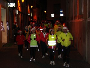 É assim que nós gostamos de funcionar. Dizer e fazer. Se possível sem grandes custos que a época é de crise e as boas ideias concretizam-se com pouco. Em vez de organizar mais uma corrida de S. Silvestre em Portalegre organizámos a Corrida do Pai Natal. Para nós é fácil. Somos muitos e entusiastas e basta combinar um treino de conjunto para determinada hora e … já está. Foi o que fizémos. Reunião junto ao Semeador. Descer a Rua do Comércio. Subir ao CC Fontedeira, descer pelos Correios, subir outra vez a Rua do Comércio, passagem pelos bares da Praça da República, descer pelo cemitério – aqui em passo acelerado que isto é tudo malta que gosta de viver! -, atravessar os Assentos, beber uma cervejita na Oliveirinha, passar pela notável obra de engenharia, entrar no Modelo e no Inter e acabar na casa-mãe, a Pista de Atletismo. Um pouco mais tarde alegre convívio na Garrafeira dos Canastreiros. Qual vai ser a próxima doidice? Aceitam-se propostas!