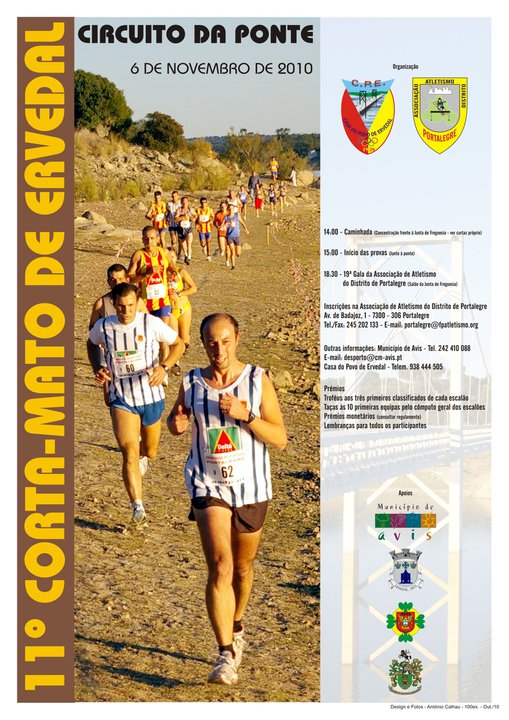 Realiza-se no próximo sábado o 10º Corta-Mato de Erval (Avis), prova que tradicionalmente abre a época da associação distrital da modalidade. As provas têm o seu início pelas 15 horas pelo que vamos marcar a partida do sítio do costume pelas 13 h. Os atletas que ainda não concretizaram a filiação (ficha + fotocópia do BI) e que pretendam participar na prova devem entregar os documentos até terça-feira à noite no treino ao Fernando ou ao Luís Maurício. Devem também comunicar ao Sérgio se pretendem participar e se podem disponibilizar transporte para que se possa organizar toda a logística da deslocação. Não esquecer que a seguir ao corta-mato realiza-se a Festa do Atletismo.
