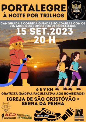 Costuma ser um clássico da rentrée portalegrense entre os aficionados da atividade desportiva associada à saúde, o Portalegre à Noite por Trilhos, que o ACP organiza anualmente em meados de setembro. Contudo ontem a noite perspectivava-se chuvosa e isso terá afastado muitos dos habituais participantes. Apesar disso reuniram-se meia centena de corajosos que contribuíram com 233 € para os Bombeiros Voluntários de Portalegre, a vertente solidária da edição de 2023 plenamente justificado pela comemoração do 125.° aniversário. Tínhamos esperança de uma participação mais significativa, logo um apoio mais significativo, mas quem organiza o que pode a mais não é obrigado. Um grande agradecimento a todos os que participaram e à Polícia de Segurança Pública, impecável no apoio à progressão dos 3 grupos (corrida, caminhada fácil e caminhada trail). Quem participou terá dado o serão por bem empregado. Nós, organizadores, ficámos um pouco defraudados, desde logo porque a noite esteve impecável e foi uma experiência e tanto levar as pessoas àquele ícone da nossa cidade por trilhos únicos que temos desbravado e inserido no UTSM. Insistiremos.