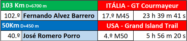 Os lobos ibéricosFernando Alvez Barrero (ACP) e José Romero Porro (ACP) representaram o ACP em Itália e nos Estados Unidos no mês de julho. No dia 7 Fernando voltou a Itália e ao Mont Blanc para enfrentar, e desta vez conseguir, os 103 Km D+ 6700 m do Grande Trail Courmayeur. Uma voltita de dia inteiro que deixou o nosso mais experiente corredor de ultras plenamente satisfeito: “Siempre es un placer y un honor tener la oportunidad de correr por estos paisajes tan salvajes, aislados y solitarios. Me quedo con la imagen de ir corriendo por el Lac Combal, siguiendo el recorrido del UTMB y mirar hacia la derecha, y ver, allí en lo alto, a unos 2.800 metros de altitud, unos puntitos negros sobresaliendo entre la luminosidad, al atravesar los neveros, y pensar: Joder, por donde coño nos han metido¡ Maravilloso. Me vengo con las paces hechas con Courmayeur, después de 2 años. Lo ansiaba.“