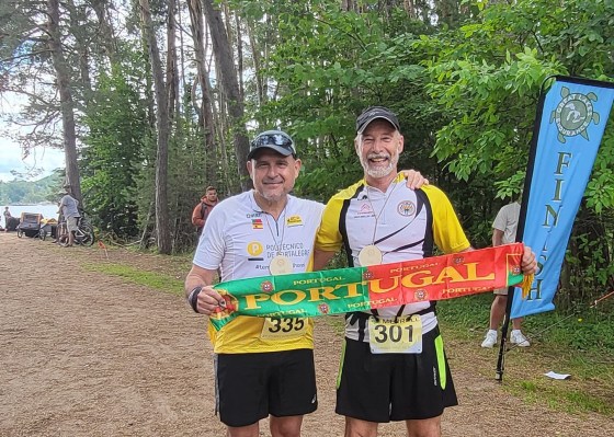Já no final do mês (29) José aproveitou a oportunidade de viajar aos Estados Unidos para visitar familiares e matar o vício. Uma viagem de 8 h até à fronteira com o Canadá para participar nos 50 Km numa volta completa a uma ilha selvagem Grand Island no Lago Superior do Michingan. Toda uma experiência! Sobre a participação José partilhou: “La carrera pintaba bonita. Y vaya si lo ha sido. Llegamos al norte de Michigan el día antes, tras 8 horitas de coche. El viaje desde España me había dejado baldado y me dolía bastante la espalda. Además, apenas pude dormir en 48 horas y eso me preocupaba aún más. Que sea lo que Dios quiera, pensé. A las 4 menos diez de la madrugada ya estaba en pie, pues tenía que coger el barco a las 5 menos cuarto. Habia dormido unas 3 horas. Llegué a la isla de noche y hacía bastante frío. Aún así, los mosquitos nos comían. Nada más llegar a la isla, un tipo se dirigió a mi eufórico. Era un portugués que al ver las banderas de España y Portugal en mi camiseta se emocionó. Un tipo muy agradable y simpático con el que espero volver a coincidir algún día. Antes de la salida nos recordaron que estábamos en un parque nacional y nos advirtieron de la presencia de osos en la isla. No habia música ni speaker. Todo invitaba a la tranquilidad y al silencio. A las 6 de la mañana, un tipo con un megáfono dio la salida con un simple GO en voz baja. Nada mas comenzar la carrera supe que sería una experiencia inolvidable. Senderos y caminos a la sombra de los árboles en un lugar salvaje y silencioso. Sólo se oía el canto de los pájaros y la respiración agitada…. y cuando corríamos cerca de la orilla…el batir de las olas del lago. A pesar de mis temores, me encontraba bien, así que hice los primeros 25 kilómetros con muy buenas sensaciones. Sobre el km. 15 el camino se desviaba a la playa y esos dos o tres kilómetros, a pesar de la belleza del trayecto, fueron agotadores. Además, me entró bastante cantidad de arena en las zapatillas, lo que me haría sufrir bastante los últimos 20 km. Tras una pequeña pájara sobre el km. 30 miré mi reloj y pensé que si apretaba los dientes podría bajar de las seis horas. Con ese pensamiento superé el bajón y empecé a acelerar el ritmo. Sufrir y disfrutar en la misma medida. Es lo que tiene este deporte. En el último tramo empecé a tener calambres en los cuádriceps, pero superé el trance con sales y geles (ya he aprendido a controlar los calambres). En el trayecto no había público…ni falta que hacía. Es una carrera para disfrutar de la naturaleza y para hacer introspección. Una carrera simplemente maravillosa. Entré en meta muerto…pero con una marca de 5 horas y 56 minutos. Una hora y veinte minutos menos de lo que esperaba. Cuarto en mi categoría. Por una vez estuve a punto de subir al podium. Aunque eso es lo de menos. Llegué agotado, pero feliz. No olvidaré nunca esta experiencia.“