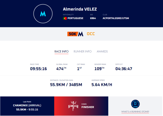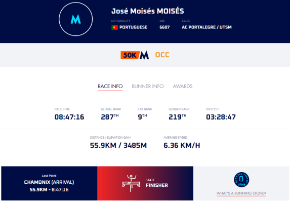 Neste artigo uma palavra de incentivo e de parabéns aos restantes portalegrenses presentes: Nuno Paiva (CCC), Carlos Rodrigues (CCC) e Carlos Paulino (UTMB). Os 3 conseguiram alcançar a Meta. Na hiperligação a história da sua participação. Menos feliz o lobo José Vizuete (ACP) que alinhou na mais técnica das distâncias (TDS) mas não conseguiu terminar. Forte abraço e venha a próxima.