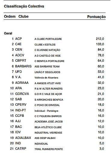 O ACP – Atletismo Clube de Portalegre classificou-se em 3.º lugar por equipas na prova de 17 Km do Poiares Trail, disputado hoje de manhã por 576 concorrentes nos trilhos entre Vila Nova de Poiares e o rio Mondego. Nuno Paiva foi 8.º mas o ACP colocou 5 atletas no TOP50, regularidade que valeu a subida ao pódio colectivo em mais um evento nacional. Na distância longa, 32 Km, pontuável para o Circuito Nacional de Trail da ATRP, Luís Semedo vindo de lesão foi o melhor dos lobos, 11.º entre 428 concorrentes.