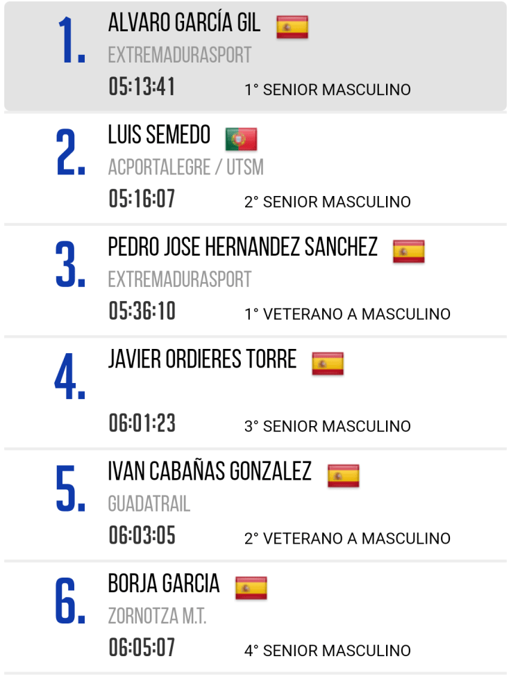 A participação da alcateia nesta emblemática prova completou-se com a participação de Odílo Blanco (ACP) 5 h 00 m 39 s, outro atleta extremeño recém chegado ao ACP com a paixão pelo trail que caracteriza estes nossos amigos espanhóis a quem, por graça, apelidamos de lobos ibéricos. Enhorabuena a todos.